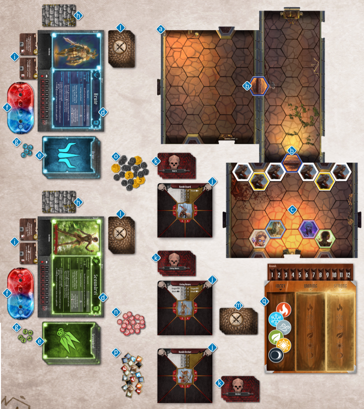 When a player begins their journey with the game, he or she will select one of the available character classes to play. Only one copy of each character class can be played in any given scenario. Each class has a unique set of abilities, so this is an important decision to make. When the box is first opened, the Brute