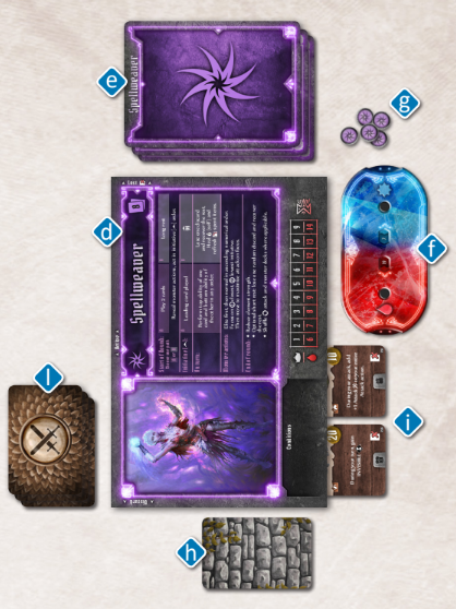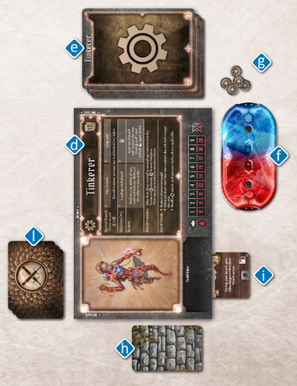 Once a character class has been chosen, the player takes the corresponding character mat, character tokens, and that character’s starting hand of Level 1 ability cards from the larger tuck box containing the character’s symbol, as well as the miniature contained in the smaller character tuck box.