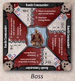 A single player can play the game as a solo experience by controlling two or more characters at once. Part of the game’s difficulty, however, comes from not knowing exactly what the other characters will be doing on their turn. Because a solo player has precise information about what each character is doing and can coordinate more effectively, the game becomes easier. To compensate for this, solo players should increase the monster level and trap damage by 1 for any given scenario without increasing gold conversion and bonus experience. |