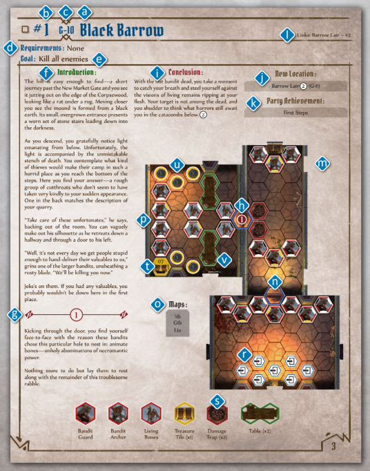 The following section will teach you the mechanics for playing through an individual scenario, using the first one in the Scenario Book, Black Barrow, as an example.