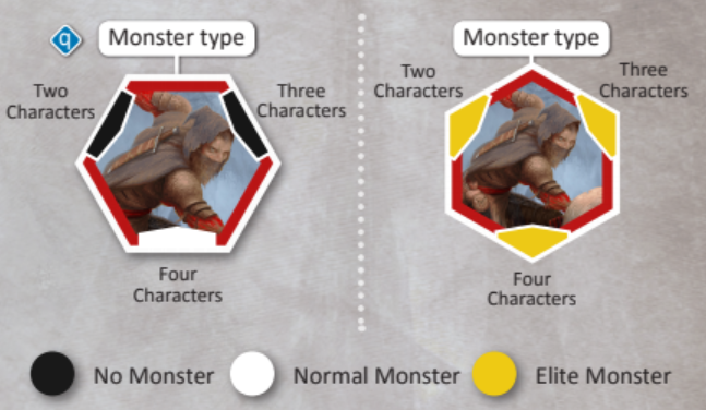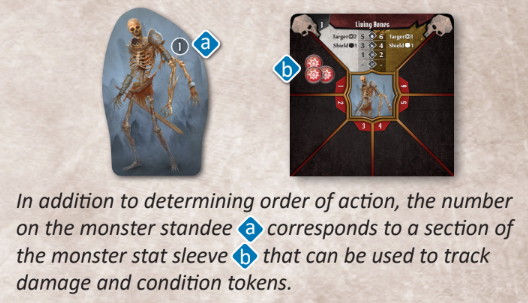 Note that only monsters in the starting room are placed at the beginning of a scenario. Monster standees each have a number to determine the order in which they act during the turn (see Order of Action on p. 29 for details). The standee numbers should be randomized when placed.