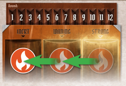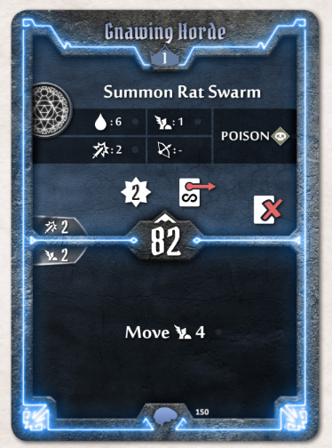 Each round, after players have selected their own ability cards, one card is played for each monster type currently on the board from their respective decks of monster ability cards. These cards determine which abilities each monster of that type—both normal and elite—will perform during the round on its turn.