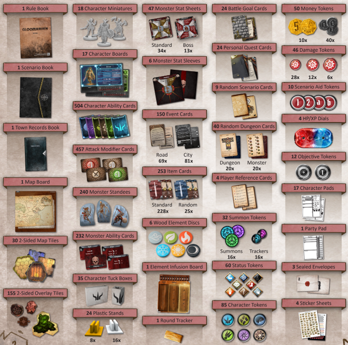 Gloomhaven is a cooperative game of battling monsters and advancing a player’s own individual goals. The game is meant to be played as part of a campaign, where a group of players will use the accompanying Scenario Book to string together a series of adventures, unlocking new content for the game as they progress. Any revealed scenario, however, can also function as a highly variable stand-alone experience.