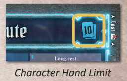 As characters level up, higher level ability cards will also become available. Even though players have access to more cards, the maximum number of cards they can take into battle (hand limit) remains the same. Therefore, at the beginning of a scenario, players must select a number of cards from the character’s available card pool equal to the character’s hand limit. These cards will form the player’s hand, and only cards in the player’s hand may be used during a scenario. |