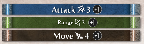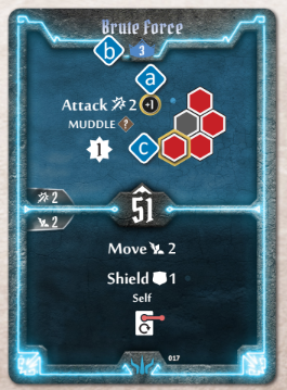 Example: The Brute wishes to enhance the top action of his ability card with a +1 on the attack |